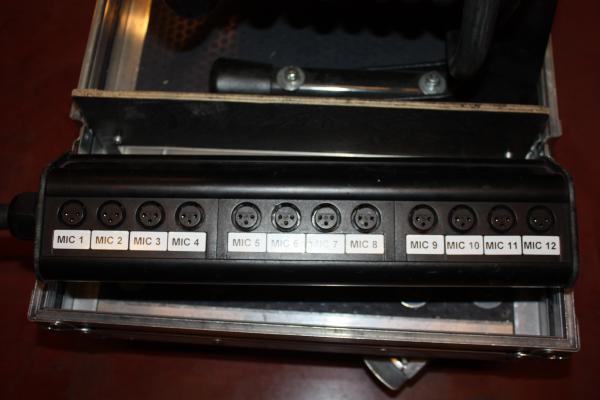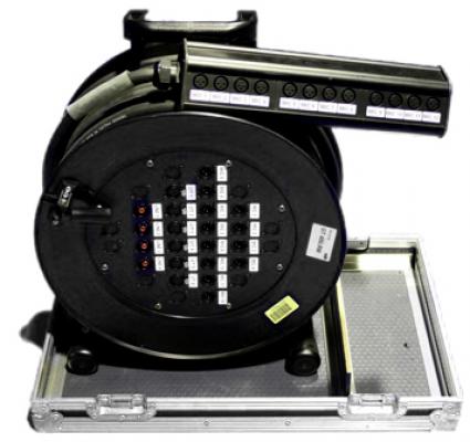 24-kanaals audio multikabel van 30 meter op haspel met stageblock en korte multikabel.