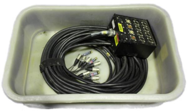 Multikabel van 30 meter met 8 XLR micro aansluitingen en 6 cinch aansluitingen, geen retourkanalen
